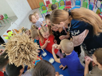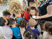 14 октября наш ясли-сад «Балапан» посетили сотрудники районной библиотеки, с целью проведения мероприятия на тему: «Хлеб всему голова». Ребятам наглядно продемонстрировали, как и из чего делают хлеб. Между группами «Непоседы» и «Гульдер» были проведены эстафеты.