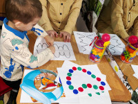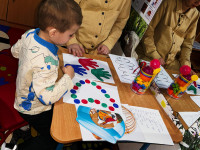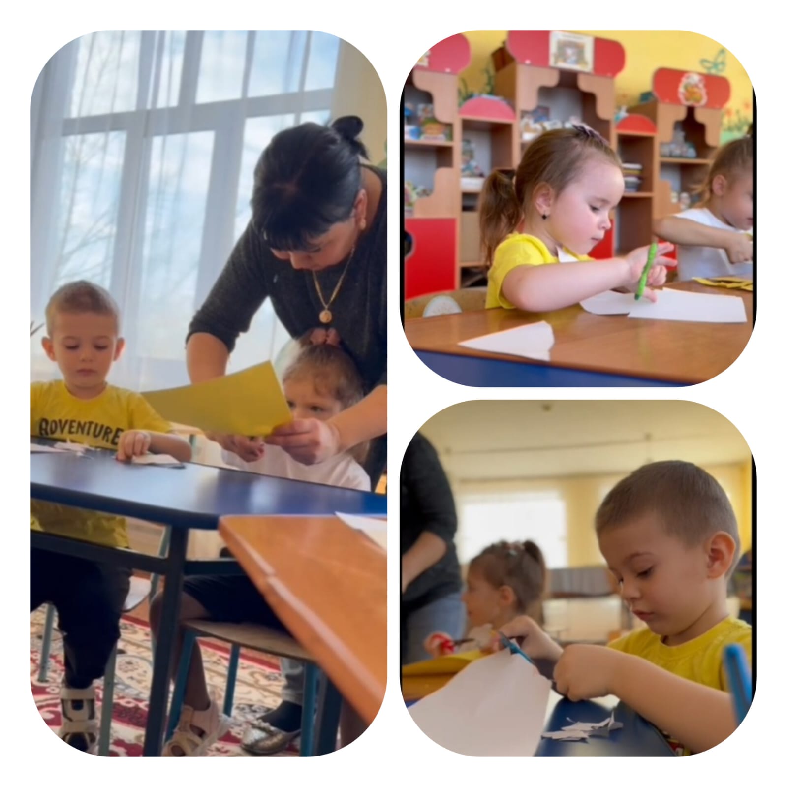 «Балықты суда жасырыңыз» ерте жастағы «Крохи» тобының гуашь ұғымын бекіті қағаз бет іздерін қалдырды, сонымен қатар қылқаламды дұрыс ұстауға үйренді.