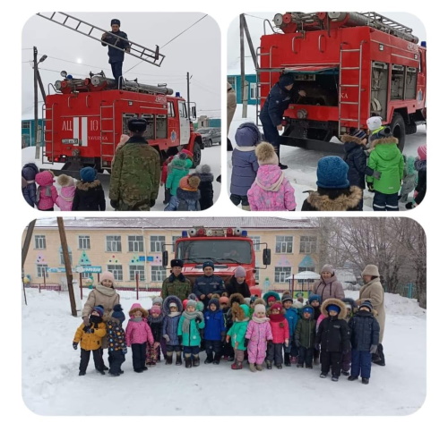 «Балапан» бөбекжай — бақшасына өрт сөндіру бөлімінің қызметкерлері келді. Олар мектепке дейінгі мекемеге өрт сөндіру көлігімен келді, балалар бұл күтпеген кездесуге өте қуанышты болды. Өрт сөндіру қызметкерлері өрт қауіпсіздігі ережелері туралы айтып берді. Қолжетімді және қызықты түрде балаларға төтенше жағдайларда өзін қалай ұстау керектігін түсіндірді, өрттің жиі себептері туралы айтты. Бұл кездесу балалар үшін танымдық және есте қаларлық болды. Өрт сөндіруші мамандығына қызығушылық пен құрмет тудырды.